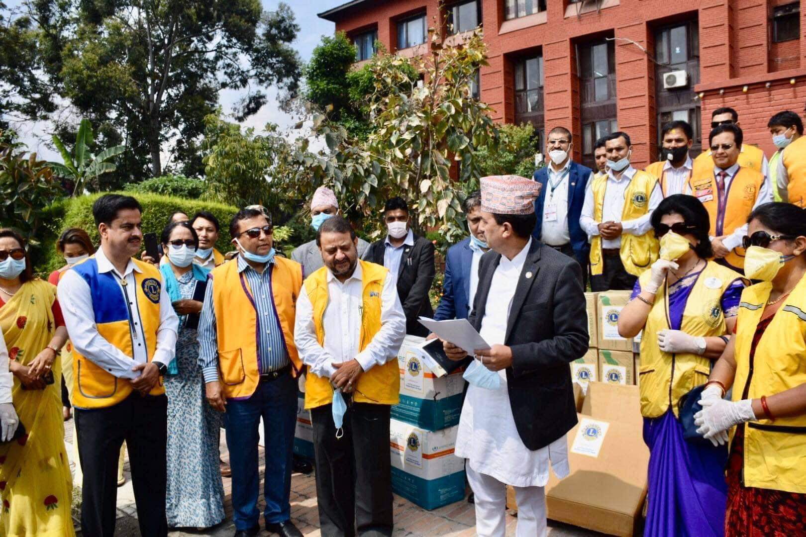 यसैगरी आज मिति २०७७-०१-१४ गते आईतवार। हिजो प्याकिङ् गरिएका ती सम्पूर्ण सामग्रिहरुलाई लोड गरेर स्वास्थ्य मन्त्रालय लगी माननिय स्वास्थ्य मन्त्रीज्यूलाई हस्तान्तरण गर्ने कार्य पनि सम्पादन भयो। लायन्सहरुको तर्फबाट GAT Area Leader Lion Khagendra Sitaula सरले सामानको विवरण, प्रेस रिलिज सहित हस्तान्तरण कार्य सम्पन्न गर्नुभयो भने नेपालका अधिकतम मिडियाहरु समक्ष स्वास्थ्य मन्त्री माननिय भानुभक्त ढकाल ज्यूले धन्यवाद सहित नेपाली लायन्सले समाजमा पुर्याईरहेका सेवा कार्यहरुको मुक्त कण्ठले प्रशंसा गर्नुभयो।कार्यक्रममा LCIF Area Leader लायन बालकृष्ण बुर्लाकोटि, तीनवटा डिष्ट्रिक्टका गभर्नरज्यूहरु तथा अनेकौं लायन लिडरहरुको उपस्थिति रहेको थियो। सो कार्यक्रममा डिष्ट्रिक्ट 325 A1 र A2 द्वारा यस लकडाउन अवधिमा गरिएका सेवा कार्यको लिखित विवरण DGE लायन टंक बहादुर श्रेष्ठ तथा DG लायन शोभा जोशिज्यूले क्रमश: मन्त्री ज्यू तथा पत्रकार मित्रहरुलाई उपलव्ध गराउनु भएको थियो।